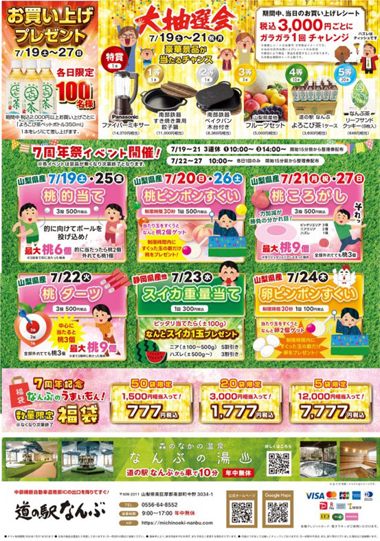 2025年7月19日 道の駅なんぶ 7周年祭を開催いたします!